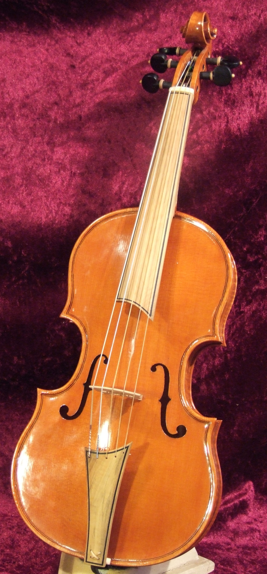 Griffbrett & Saitenhalter aus Buchsbaum, Sättel aus Knochen.